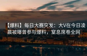 【爆料】每日大赛突发:大V在今日凌晨被曝曾参与爆料,窒息席卷全网