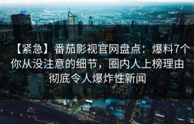 【紧急】番茄影视官网盘点:爆料7个你从没注意的细节,圈内人上榜理由彻底令人爆炸性新闻