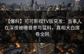 【爆料】可可影视TV版突发:当事人在深夜被曝曾参与猛料,真相大白席卷全网