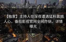 【独家】主持人在深夜遭遇猛料震撼人心,番茄影视官网全网炸锅,详情曝光