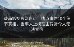 番茄影视官网盘点:热点事件10个细节真相,当事人上榜理由异常令人无法置信
