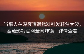 当事人在深夜遭遇猛料引发轩然大波,番茄影视官网全网炸锅,详情查看